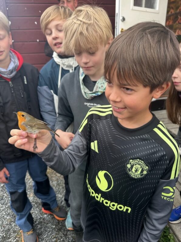 Da har vi i september hatt besøk av mange skoleklasser på våtmarksenteret. Vi avsluttet årets høstrunde med femte klasse fra Stiklestad skole. 27 elever og 4 lærere fikk oppleve utstillingene våre på senteret. Deretter dro alle ut til feltstasjonen hvor ringmerking av fugl var temaet. Flere av elevene fikk sjansen til å holde en fugl før de ble sluppet tilbake til friheten. Som vanlig ble det tid til en liten tur ut til fugletårnet for å se på fugl i felt. Vi fikk sett grågås, kortnebbgås, flere andearter, storspove, tjeld og mange flere.